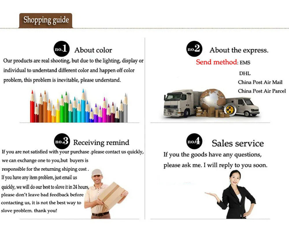 2. Ако получените от вас продукти са повредени или с грешен стил, моля, не оставяйте отрицателни отзиви, а се свържете с нас, ние ще се погрижим за това и ще намерим най-добрите решения. Вашето удовлетворение е наш стимул да се справяме по-добре.